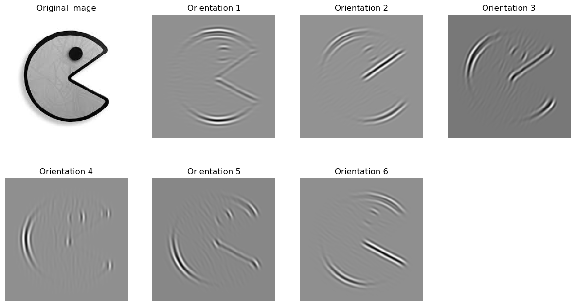 Although the oriented filters were sourced from pyrtools for convenience, the core of the task required implementing the steerable pyramid independently. This implementation involved decomposing an image into a multi-scale, multi-orientation representation, where each level and orientation captures distinct frequency and directional information. These oriented filters were used as the foundation for constructing the steerable pyramid, adhering to the principles described in the paper.